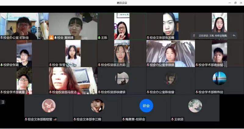 2021年10月9日晚19:00,校研会2021年新生见面会暨培训会在三元里校区教工食堂4楼顺利举办。会议由主席团成员张璐主持,校研会26名工作人员参与此次培训。会议简单介绍校研会工作、部署各部门工作,对深化改革及作风建设进行全员学习。
